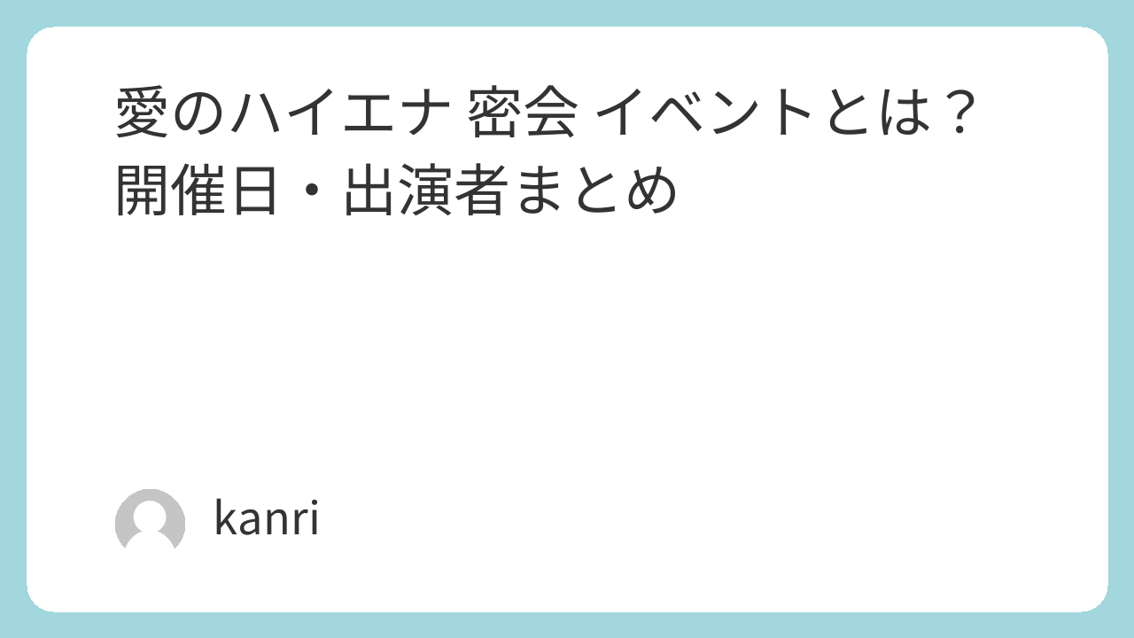 この記事では、愛のハイエナ 密会 イベントとは何かを中心に、