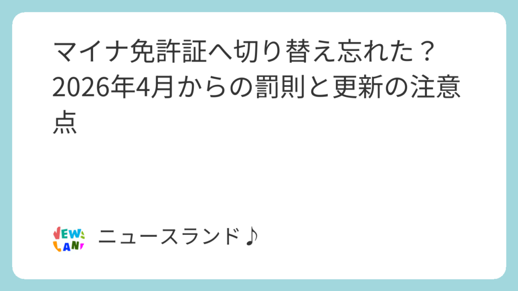 マイナ免許証へ切り替え忘れた?2026年4月からの罰則と更新の注意点
