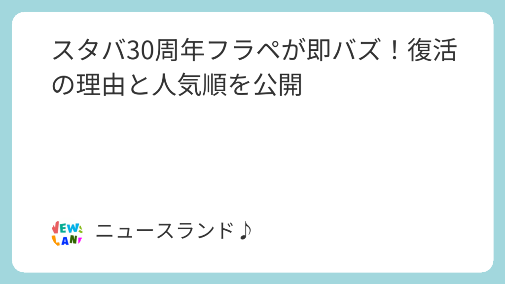 夕方、駅前のスタバの前を通ったときのこと。 店の前に、いつもより長い列。 ざわざわした空気。 スマホを見たら、 「スタバ30周年フラペチーノ復活」 の速報。
